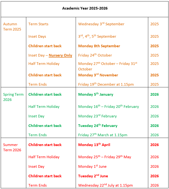 The school is open from 8.30am for a soft start. Morning registration is at 8.45am. The school day ends at 3.15pm.